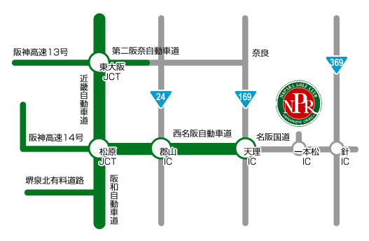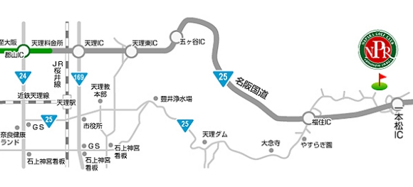 名阪国道・一本松 5km以内 大阪方面から西名阪自動車道を利用して天理ICからそのまま名阪国道に入る。名阪国道は一本松ICで降りて国道25号線を福住方面に少し走行するとすぐに右に入る道があり、ここを右折してコース。一本松ICからは約1分と至近。